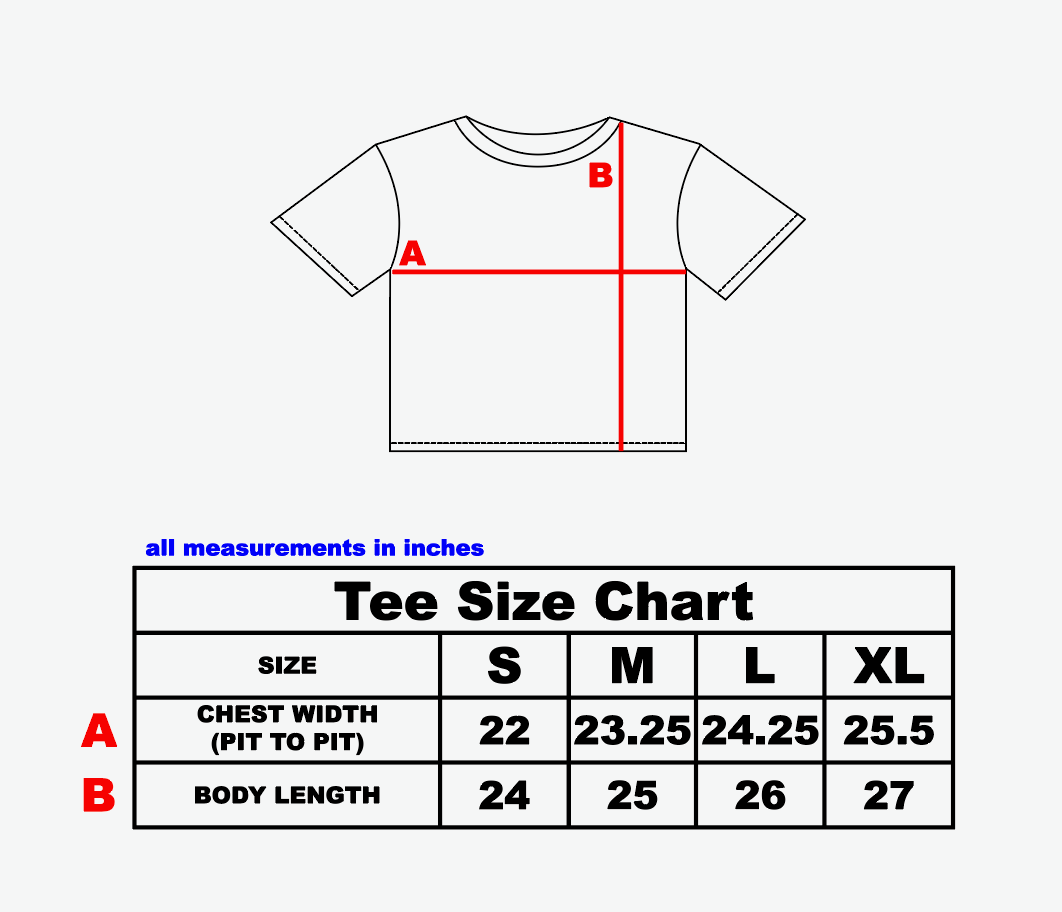made of a breathable 100% cotton slub fabric and printed with a water based ink that feels like the print is a part of the fabric. they fit slightly more slim than our usual tees but still with plenty of room for all body types. the crop on the tees remains about the same. the sleeves land around halfway down the bicep.